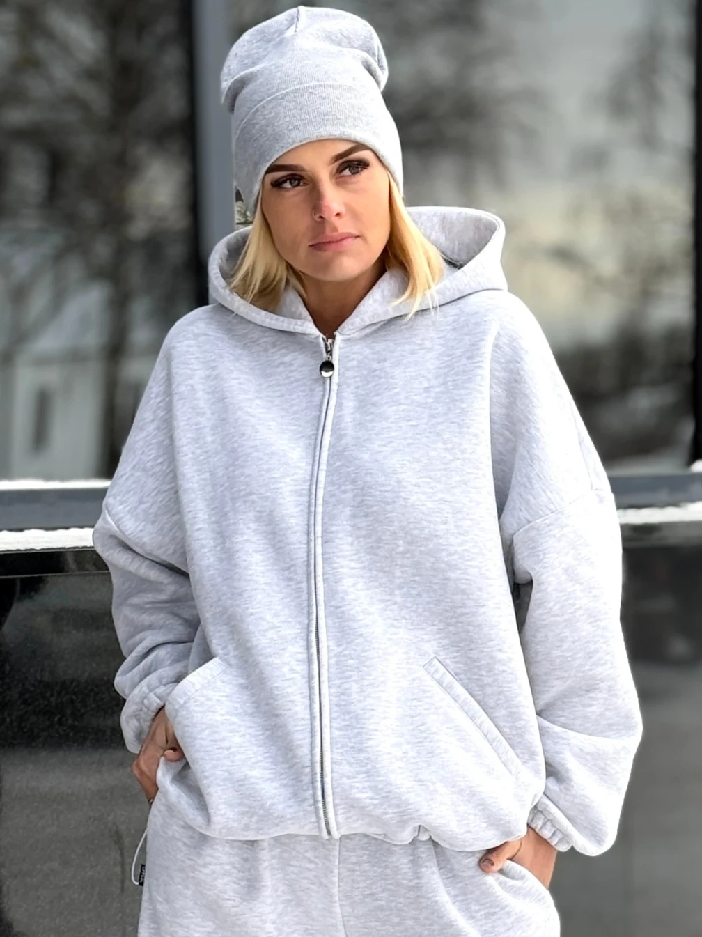 Объемное худи свободного кроя оверсайз выполнено из мягкого материала с бархатистым эффектом и теплым начесом. Модель оснащена глубоким капюшоном, удобными карманами и надежной молнией, обеспечивая максимальный комфорт в прохладную погоду.