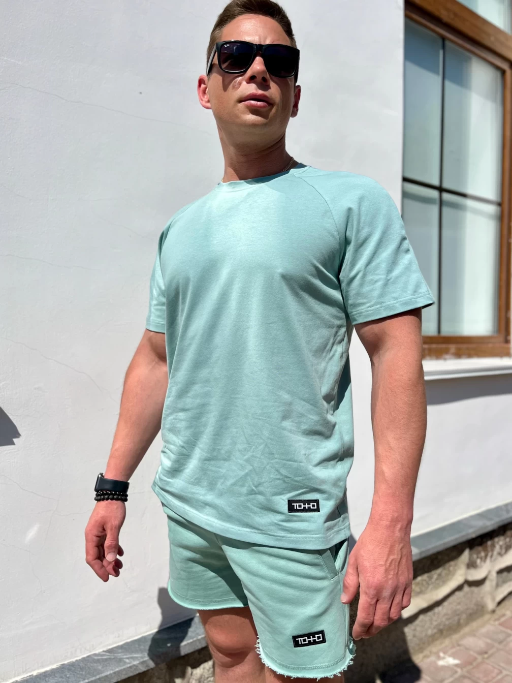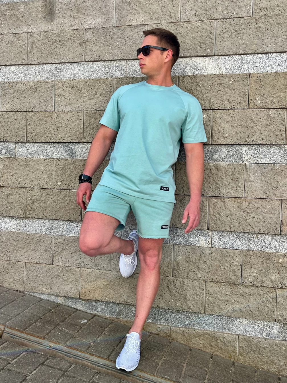 Нижняя часть костюма представлена мужскими шортами из трикотажного материала. Шорты обладают невероятной мягкостью на ощупь, что позволит вашей коже дышать даже в самые жаркие дни. Три удобных кармана помогут вам хранить все необходимые мелочи в удобном доступе. Модный сырой срез по низу штанин придает данным шортам привлекательности и индивидуальности.