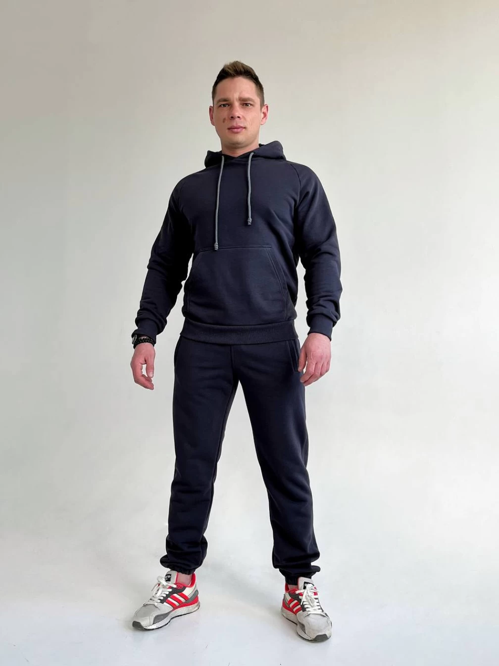 Представляем вам стильные и комфортные мужские брюки, которые станут незаменимой частью вашего гардероба. Низ на резинке обеспечивает удобную посадку и подходит для любого типа фигуры. Декоративная строчка на штанинах придает изделию дополнительный эффект, делая его еще более привлекательным. На передней половинке брюк расположены два кармана с листочкой, которые добавляют эстетическую привлекательность. Вы можете носить эти брюки на повседневных прогулках, так как они сочетают в себе практичность, стиль и удобство. Закажите сейчас, и эти брюки станут вашей самой любимой вещью в гардеробе!