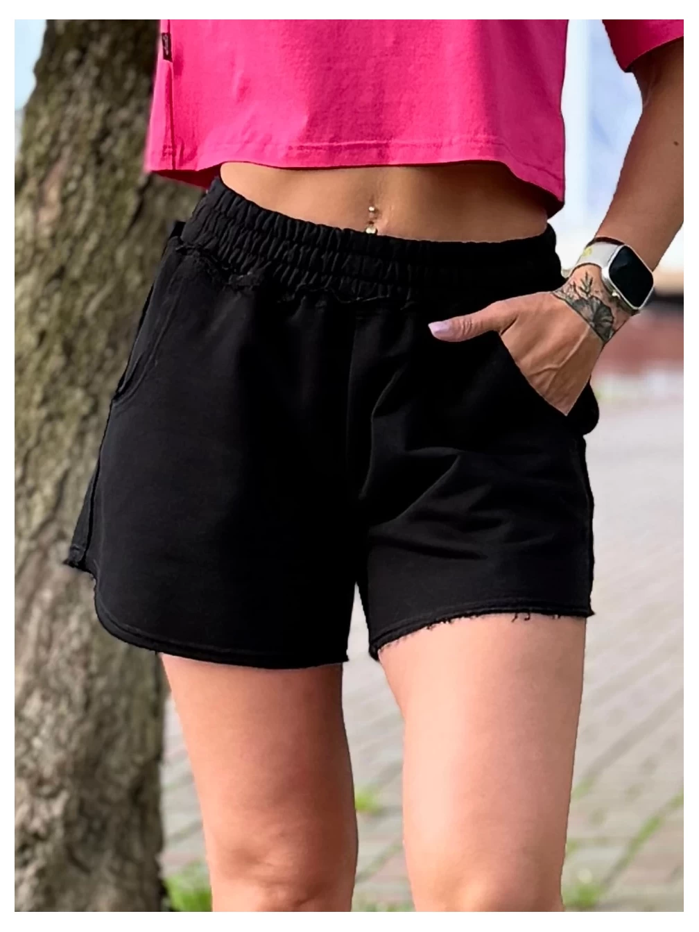 Женские шорты свободного кроя, расширенные к низу, выполнены из качественной ткани, сочетают в себе комфорт и актуальный повседневный стиль. Пояс на широкой резинке со шнурком обеспечивает удобную посадку и позволяет подогнать шорты по фигуре. Боковые карманы добавляют практичности, а необработанный срез по низу придаёт образу лёгкую небрежность и современный характер. Идеальный выбор для прогулок, отдыха и тёплых летних дней.