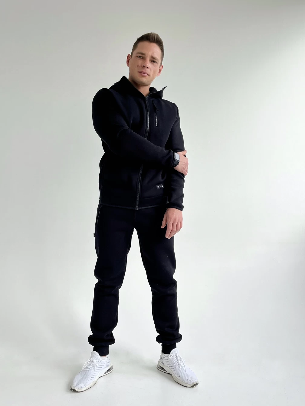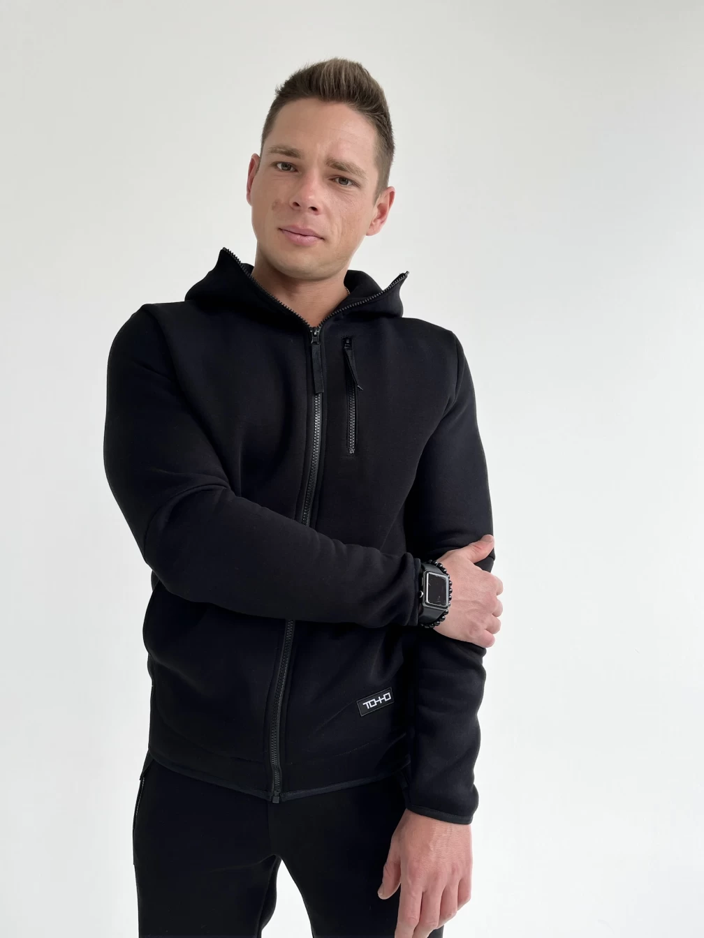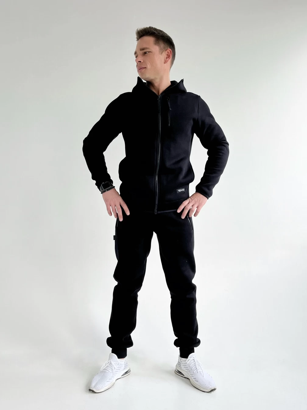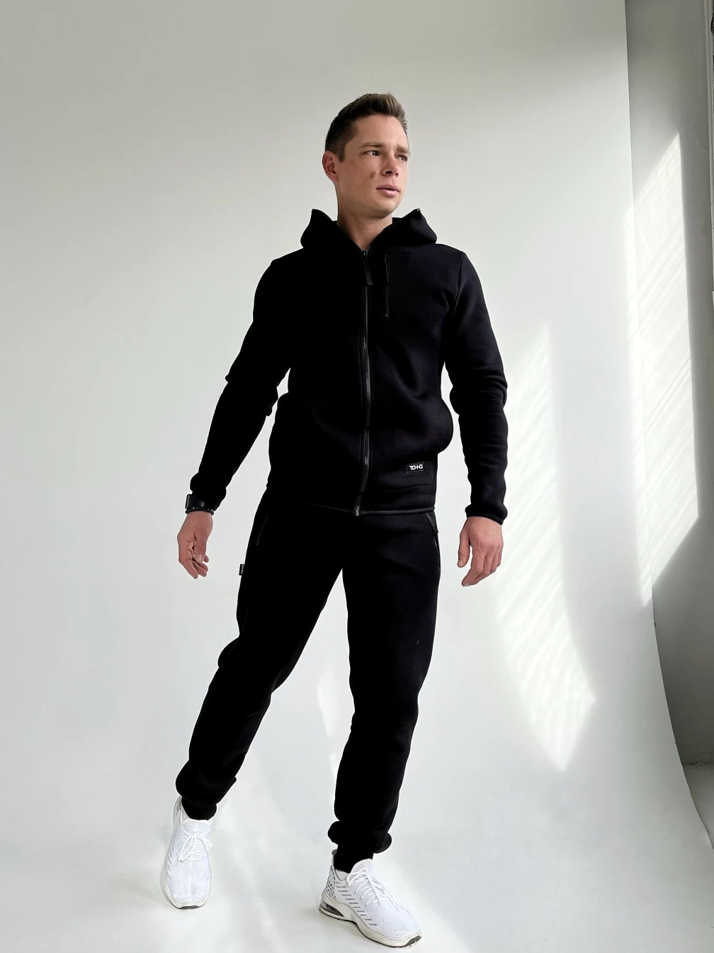 Представляем вам стильный и удобный комплект, который состоит из мужских брюк и худи. Брюки имеют низ, обработанный довязом, что придает им дополнительную прочность и долговечность. Пояс на резинке с шнурком-завязкой обеспечивает идеальную посадку на талии, что позволяет сохранять комфорт и удобство в любых условиях. Два кармана на молнии на передних половинках добавляют удобства и практичности, позволяя хранить необходимые мелочи под рукой. Худи оснащено замком, который обеспечивает надежную фиксацию и защиту от ветра и холода. Капюшон добавляет удобства и защищает голову от непогоды. Тонкая резинка по низу и на рукаве обеспечивает идеальную посадку на талии и руках, что позволяет сохранять тепло и комфорт в любых условиях. Комплект выполнен из качественных материалов, что обеспечивает долговечность и удобство при ношении. Он подойдет для повседневной носки, прогулок, спортивных мероприятий и других активностей. Он станет отличным дополнением к вашему гардеробу.