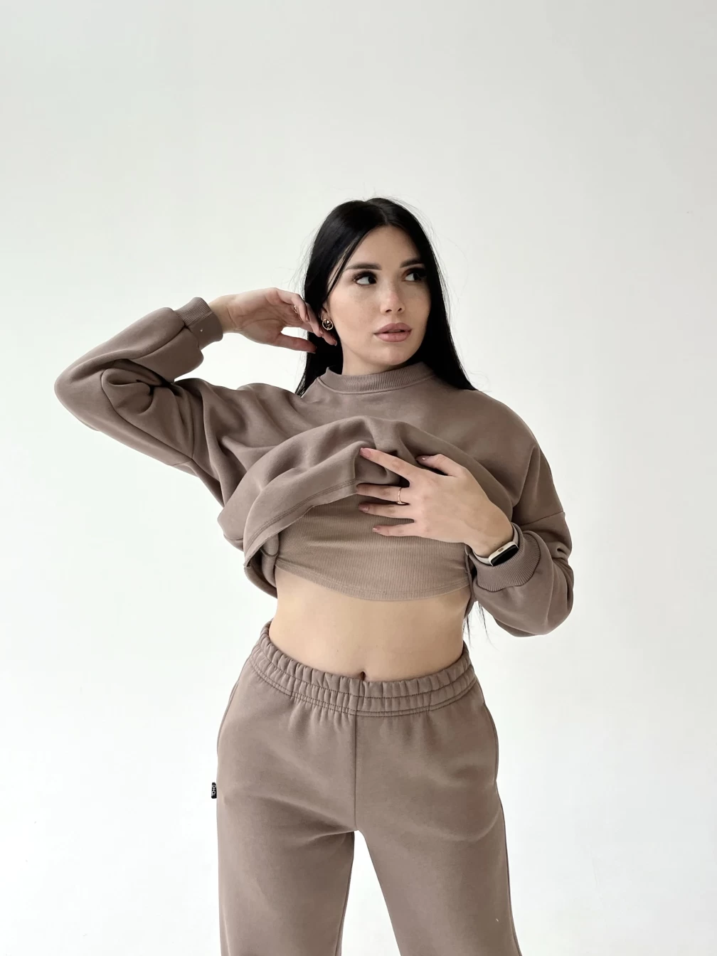Качественный материал с начесом, использованный в обоих изделиях, обеспечивает мягкость, тепло и комфорт при носке. Теперь вы можете наслаждаться модой, не отказываясь от уюта. Этот восхитительный комбинированный костюм добавит в ваш гардероб неповторимость и элегантность.