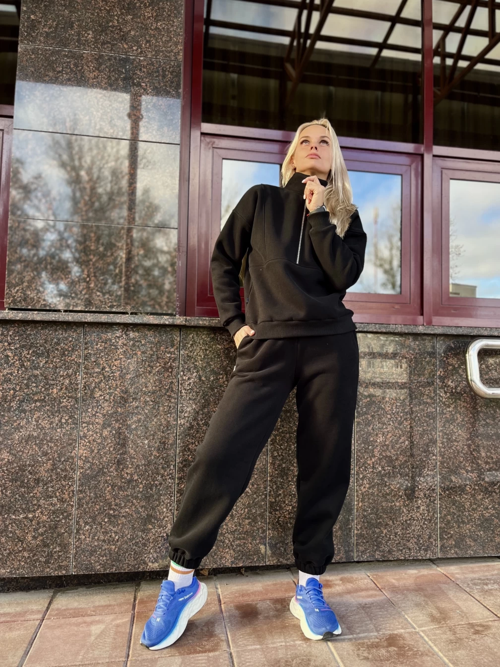 Представляем стильный и удобный женский костюм из ткани с начесом и эффектом бархата, который сочетает в себе элегантность и комфорт. Верх — это толстовка с довязом на рукавах и воротником-стойкой. Небольшая молния до середины изделия добавляет стильный акцент, а мягкий велюр дарит неповторимое ощущение уюта. Довяз на рукавах придает особую изюминку, подчёркивая вашу индивидуальность.