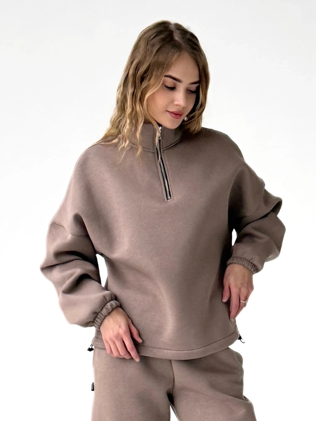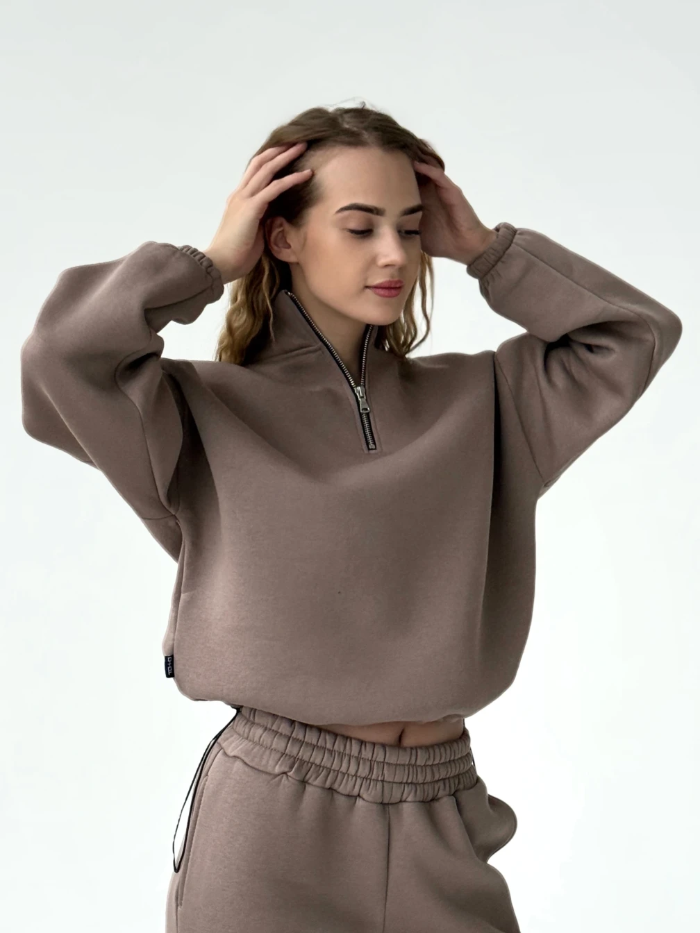 Эта оверсайз толстовка с высоким воротником, начесом и молнией — идеальный выбор для тех, кто ценит комфорт и универсальность в одежде. Просторный крой и мягкий материал обеспечивают свободу движений, а манжеты с резинкой придают дополнительную аккуратность. Отлично сочетается с любыми базовыми вещами, создавая непринужденный и современный образ для повседневных выходов.