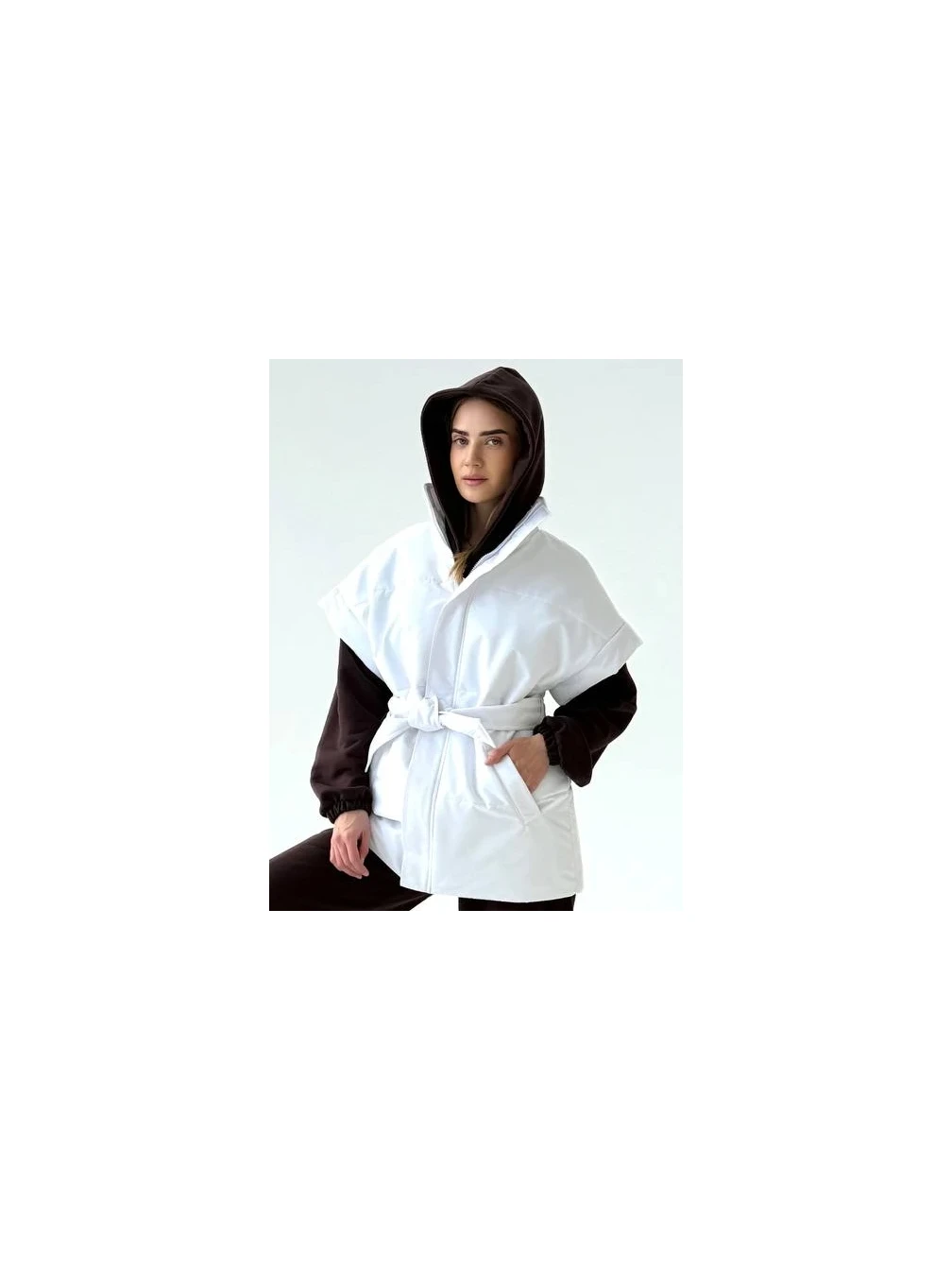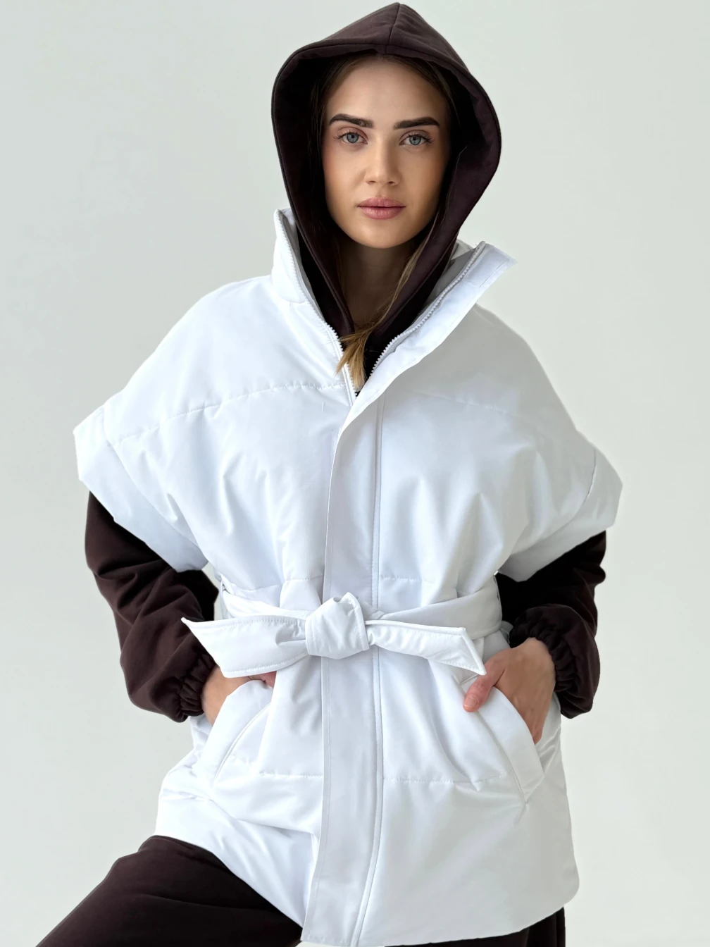 Утепленная жилетка на синтепоне – практичная и стильная модель для прохладной погоды. Благодаря современному наполнителю она эффективно сохраняет тепло, оставаясь легкой и комфортной в носке. Высокий воротник-стойка обеспечивает дополнительную защиту шеи, а пояс на талии позволяет регулировать посадку, создавая приталенный силуэт. Свободный крой делает жилетку универсальной, позволяя носить ее поверх свитеров и толстовок. Глубокие боковые карманы удобны для рук и хранения необходимых мелочей. Надежная застежка и прочные швы гарантируют долговечность и комфорт в использовании.